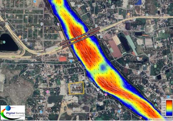 The Bangladesh Army (24 Engineer Construction Battalion - ECB) has undertaken a project aimed at optimizing the safe transportation of Jet A-1 fuel to the Kurmitola Aviation Depot (KAD). DSGS conducted a detailed bathymetric survey and hydrological Modelling in Sitalakhya River near Pitalganj Depot.